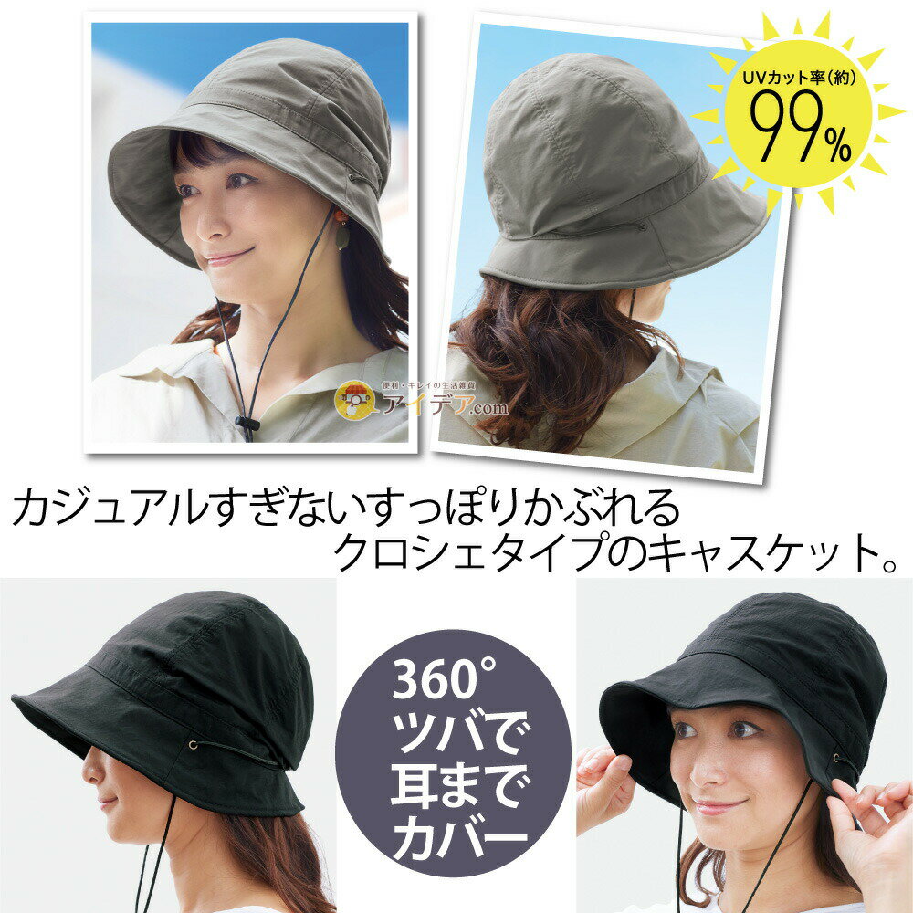この【とびにくい洗えるキャスケットハット】は、前方のツバの長さが約7.5cmで、360°に広がるツバで耳までカバー!さらにUVカット率は、最強の約99%!!これなら安心して外出できますよ♪