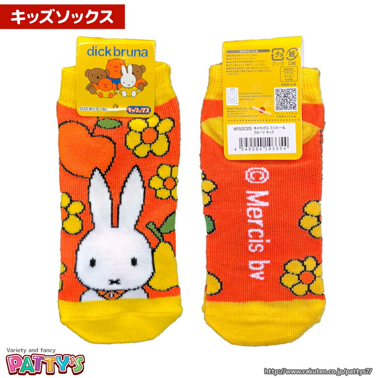 [あす楽]【キッズソックス】ミッフィー&フルーツ MFSOC375 【くるぶしソックス】【アンクレットソックス】ブルーナ まとめ買い お得 セール キャラクターソックス キャラ スモールプラネット 13 14 15 16 17 18 cm センチ くつした 靴下 パティズ