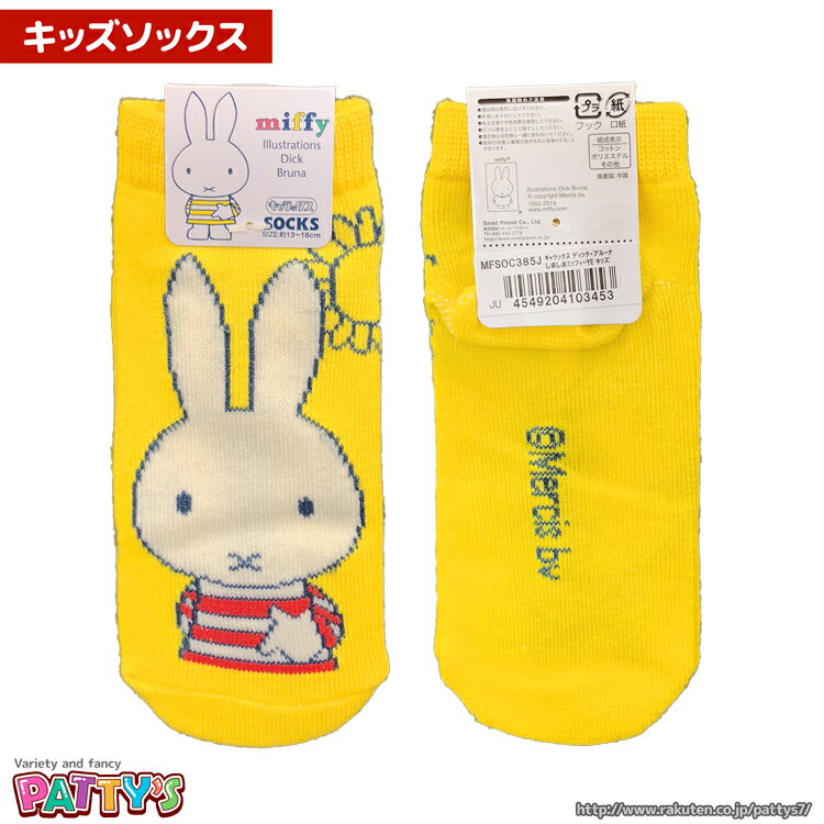 [あす楽]【キッズソックス】ディック・ブルーナ しましま ミッフィー イエロー MFSOC385J 【くるぶしソックス】【アンクレットソックス】 まとめ買い お得 セール キャラクターソックス キャラ スモールプラネット 13 14 15 16 17 18 cm センチ くつした 靴下 パティズ