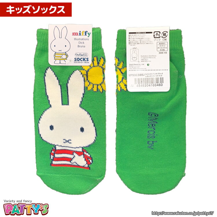 [あす楽]【キッズソックス】ディック・ブルーナ しましま ミッフィー グリーン MFSOC386J 【くるぶしソックス】【アンクレットソックス】 まとめ買い お得 セール キャラクターソックス キャラ スモールプラネット 13 14 15 16 17 18 cm センチ くつした 靴下 パティズ