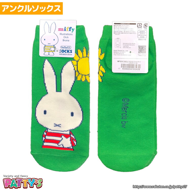 [あす楽]ディック・ブルーナ しましま ミッフィー グリーン MFSOC383J【アンクルソックス】【くるぶしソックス】サンリオ ディズニー まとめ買い お得 セール キャラクターソックス スモールプラネット アンクル 22 23 24 25 cm センチ くつした 靴下 パティズ