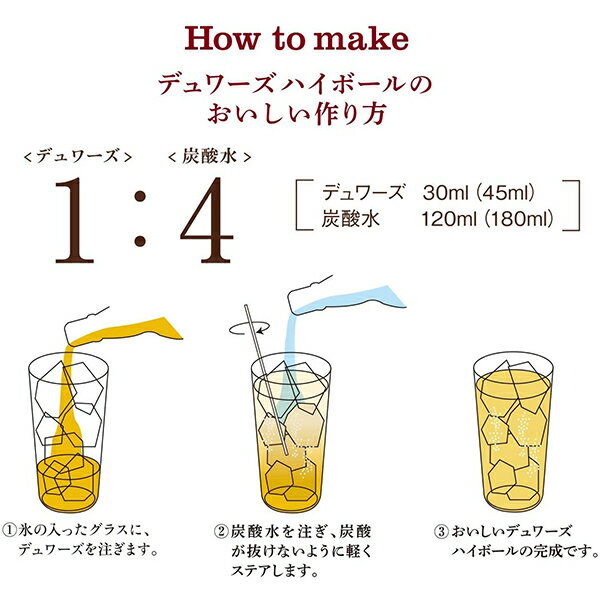 商品仕様・スペック 生産者 デュワーズ 生産地 イギリス/スコットランド タイプ ブレンデッドスコッチウイスキー 度数 40% 原材料 モルト、グレーン 内容量 700ml ※ラベルのデザインやヴィンテージが掲載の画像と異なる場合がございます。