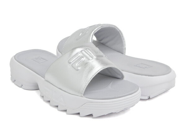 【クーポン対象アイテム 11/1(月) 9:59終了】FILA フィラ ディスラプター 厚底 メタリック スライドサンダル F0368 シルバー 銀 (レディース)
