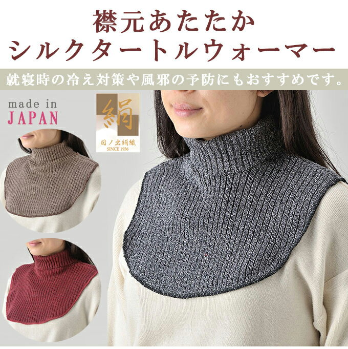《500円クーポン配布》 襟元あたたかシルクタートルウォーマー 絹100% 日本製 ネックウォーマー つけ襟 タートルネック 重ね着風つけ襟 襟元温かシルクタートルウォーマー