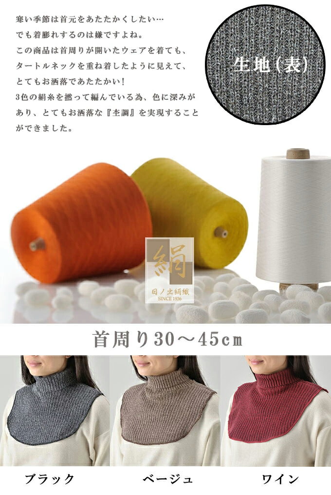《500円クーポン配布中》 襟元あたたかシルクタートルウォーマー 絹100% 日本製 ネックウォーマー つけ襟 タートルネック 重ね着風つけ襟 襟元温かシルクタートルウォーマー