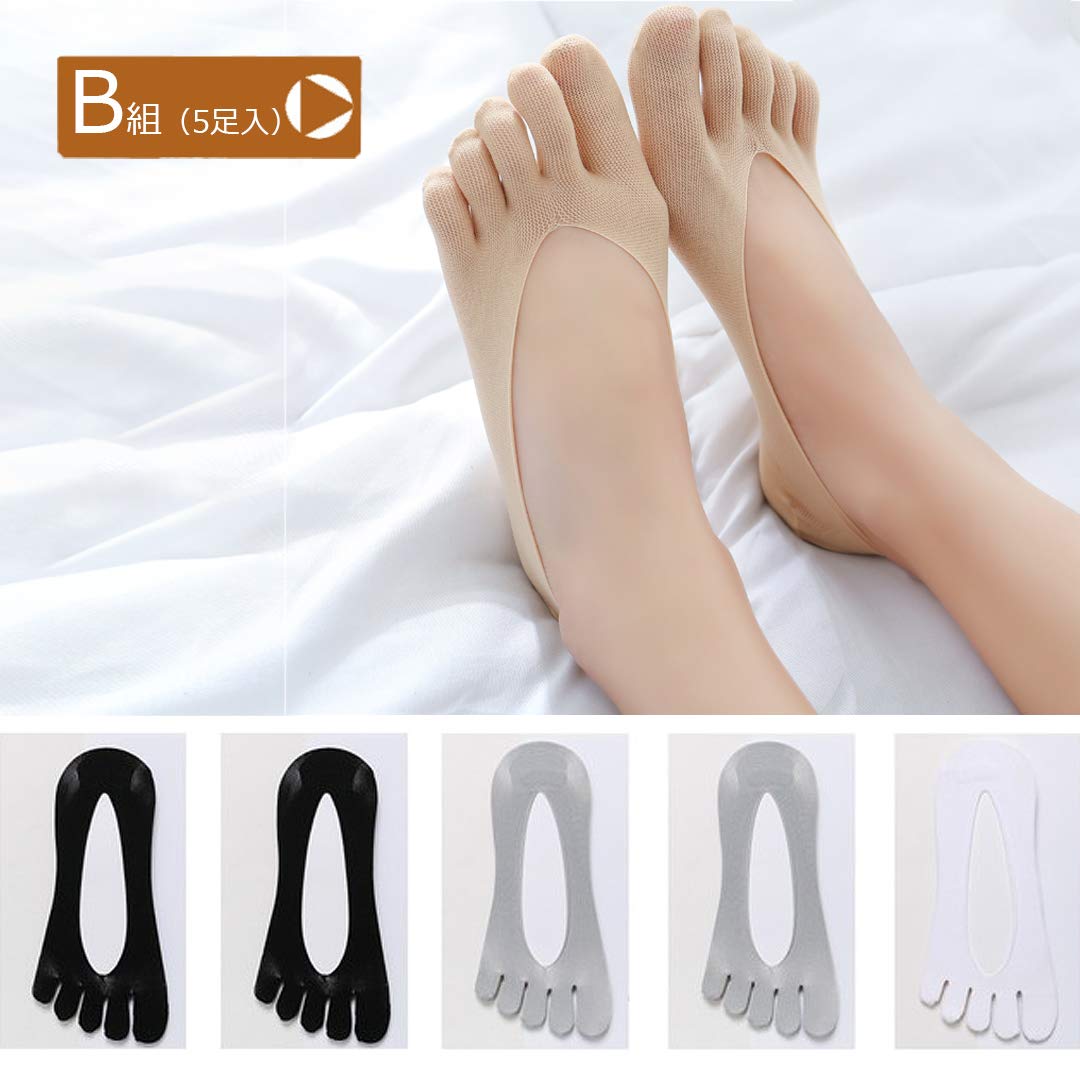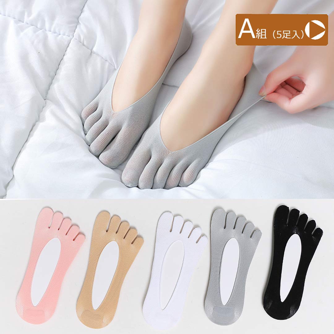 レディース 5本指 ソックス 5足セット 可愛い パンプスソックス 浅履き 靴下 滑り止め付き フットカバー 5色