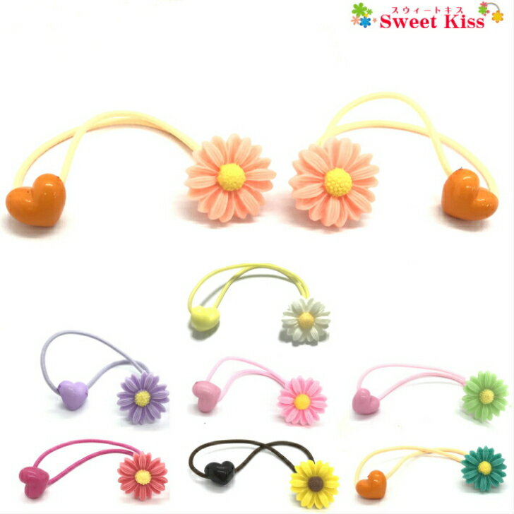 【 キッズ ヘアゴム 】デージー フラワー ハート ヘアゴム (2コ) | ピンク サーモン グリーン パープル 紫 イエロー 黄色 オレンジ グリーン 子供 こども KIDS 髪飾り かわいい 可愛い お出かけ デイリー カジュアル 三歳 幼稚園 小学生 KHGB 全品 送料無料 実施中