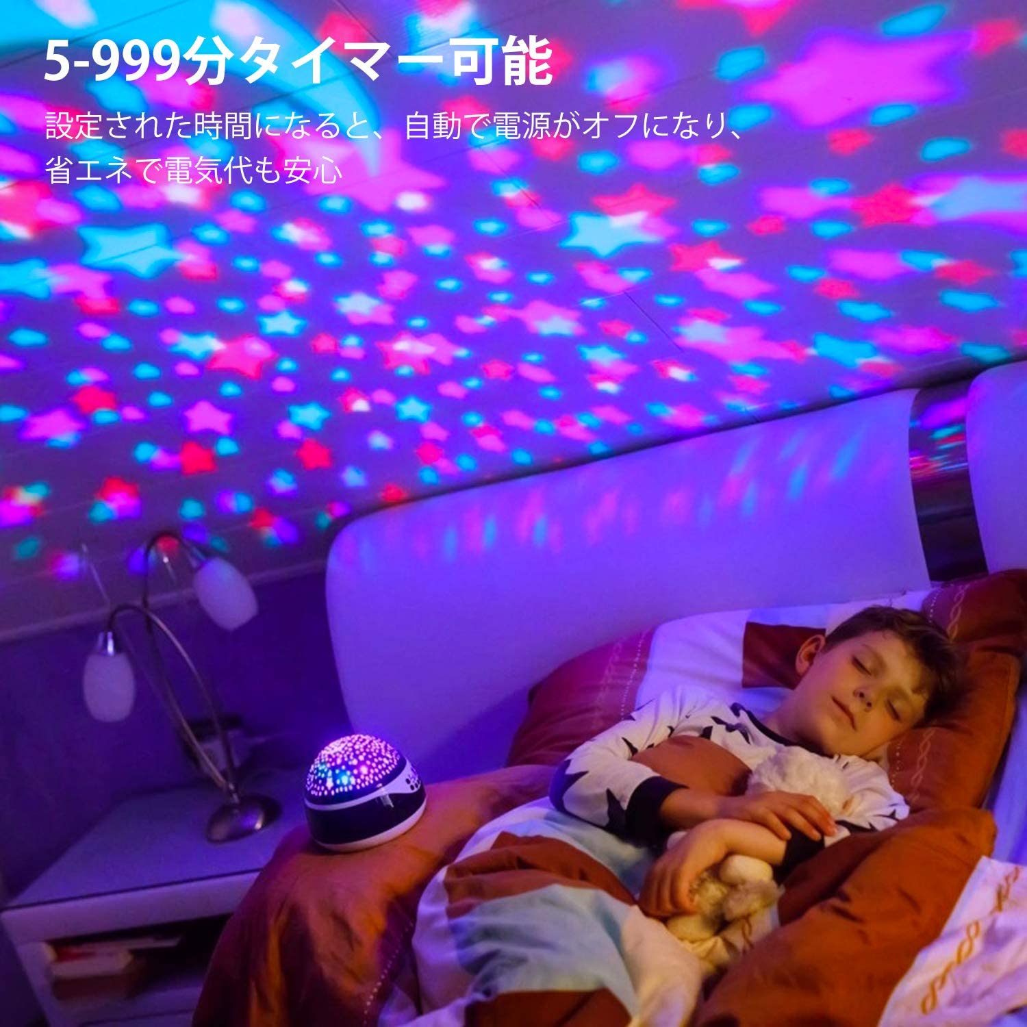 星空を見ているうちに眠てしまってもいい、入眠を妨げることなく省エネで電気代も安心です。